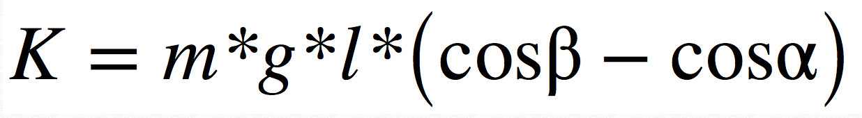 where l is the length of the pendulum rod; β is the angle of ascent with respect to the vertical; α is the angle of the initial position with respect to the vertical.